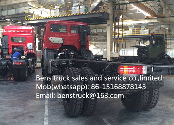 | Middle and Rear axle | 13T Benz Double reduction pneumatic brake, casting, driving axles with inter-wheel & inter-axle differential locks. | ||||
